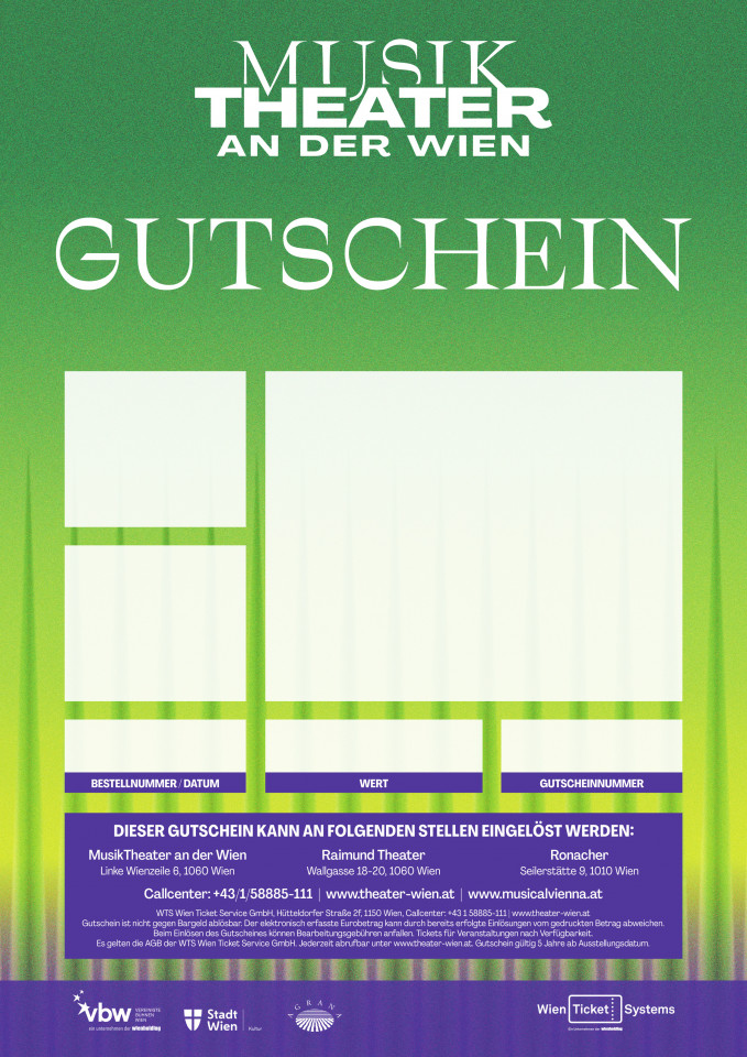 Entführen Sie Ihre Liebsten in unsere Opernwelt und schenken Sie unvergessliche Momente. Mit einem Geschenkgutschein des MusikTheaters an der Wien bereiten Sie mit Sicherheit atemberaubende Freude.